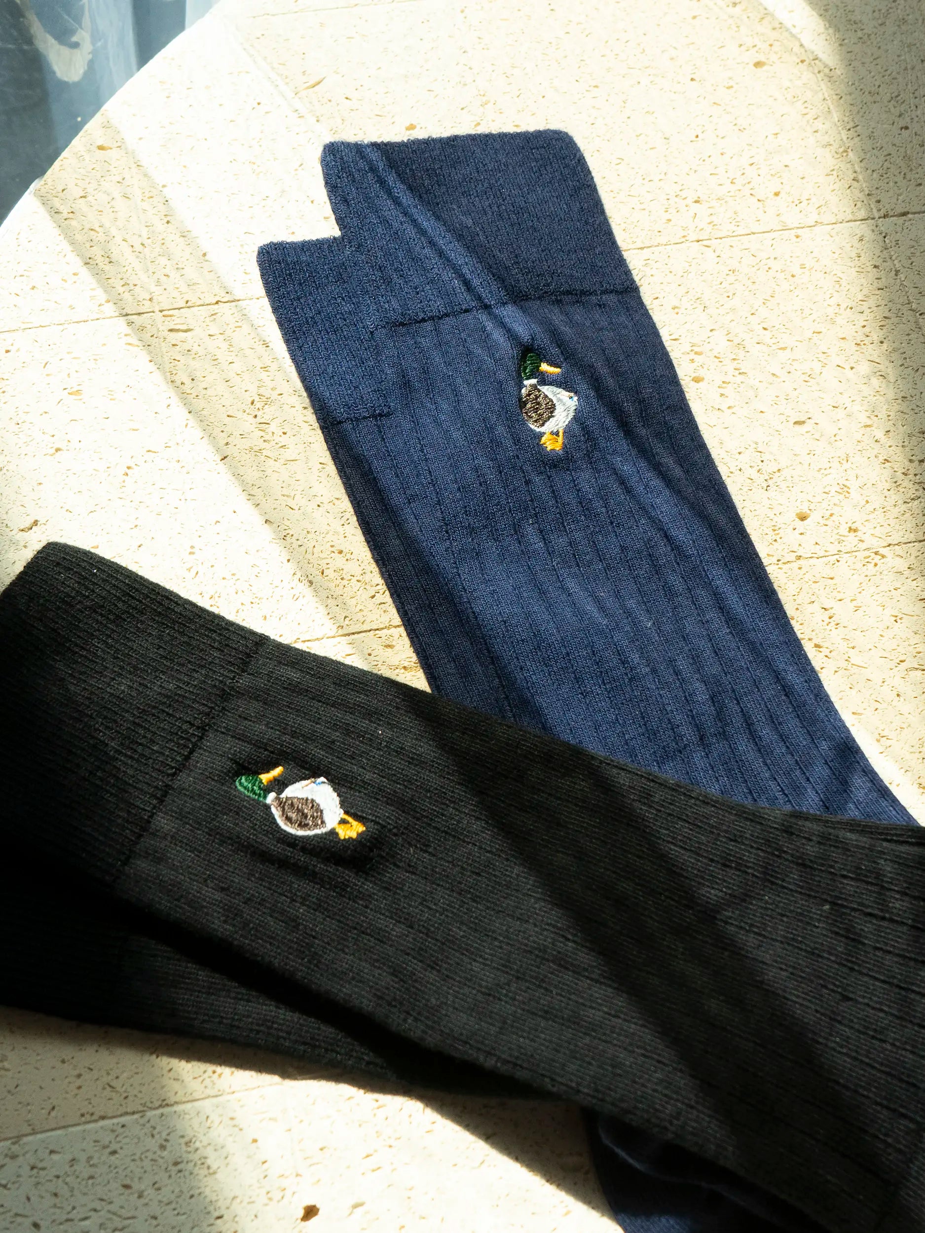 These soft cotton socks Baile are part of our limited edition of Mallard Duck embroidered items.